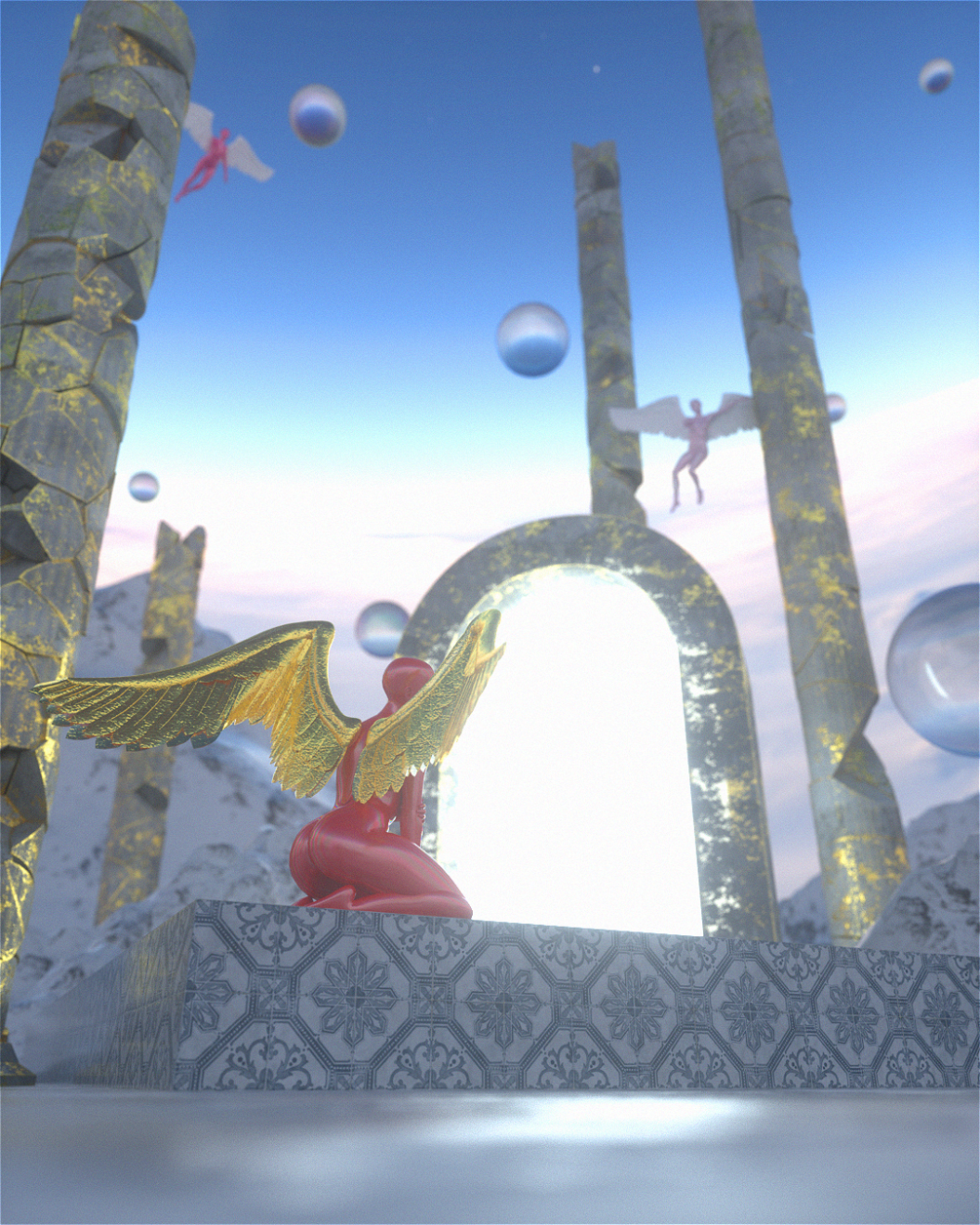 - Cinema 4D Project file - 3 Winged-woman Models - 4 Destroyed Column Models - 1 Arch Model - 1 Space HDRI